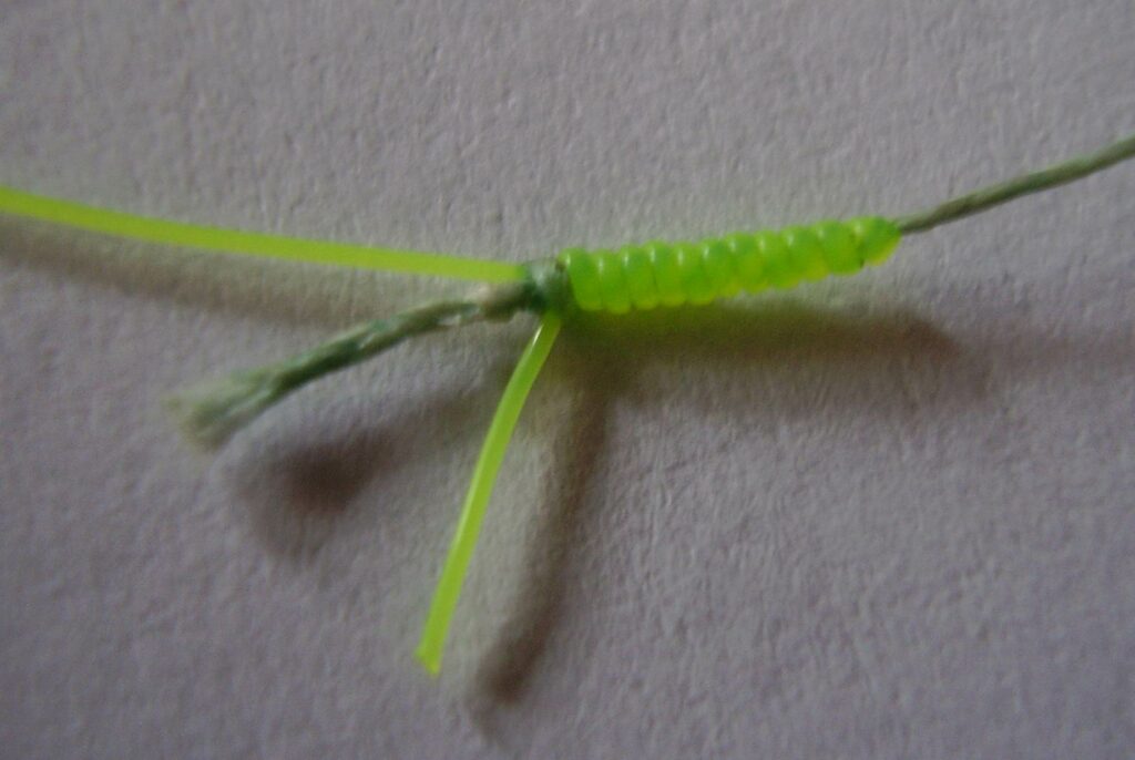 Tipp: Ha jól megfigyelitek, a készre húzott csomó alakja olyan, mint egy nyílhegy, ezért dobóelőke kötésénél a leghasznosabb, mert kis mértékben fékezi a dobást. A csomót úgy húzzuk össze, hogy egyik kezünkkel a főzsinórt, másikkal a dobóelőtét zsinórt, még fogunkkal a felesleges két zsinór végre tartsunk rá. Így csúsznak egymásra jól a menetek, így lesz tökéletes nyílhegy alakja a csomónak. A kötés mikor kész van, a felesleges zsinórvégeket úgy távolítsuk el, hogy azokon 1-1 cm maradjon. Ezzel az eljárással is csökkentve a fékező erőt, mert így könnyebben csúszik ki zsinórunk a gyűrűkön. Csavarszám elsőnek 10 előre, majd ugyanabban az irányba tekerve 5 visszafelé. Vagy 7-4 arányban is kivitelezhető. Igazából ezt a zsinórok vastagságához igazítjuk. 30-as monofilig – 25-ös fonottig 10-5; efeletti vastagságok esetén 7-4.